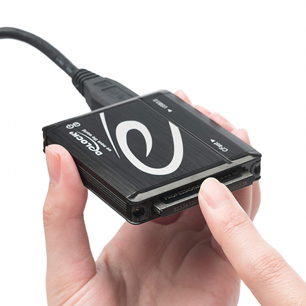同製品は、CFast規格に対応したカードリーダー。誤挿入のないプッシュロック式スロットを採用しており、メモリカードを確実に接続できる。筐体はアルミ製で、高速データ通信が可能なUSB3.0にも対応している。