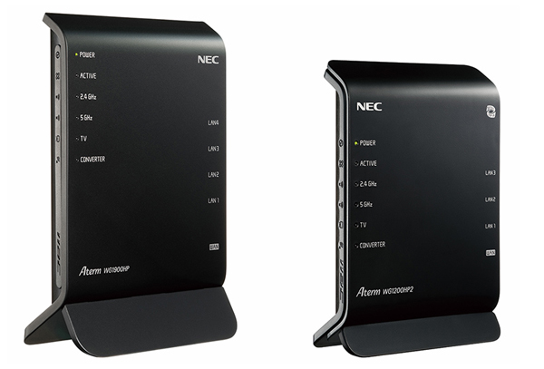 NECプラットフォームズ株式会社は、IEEE802.11ac対応の無線LANルーター「Aterm」の新製品として、3ストリームの「Aterm WG1900HP」と2ストリームの「Aterm WG1200HP2」を4月13日に発売すると発表した。