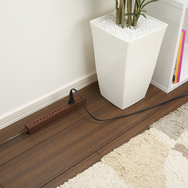 両製品は、部屋の家具やフローリングに合わせやすい木目柄の差し込みフリータップ。差し込み穴をずらすことができるため、ACアダプターでも無駄なく挿すことができる。
