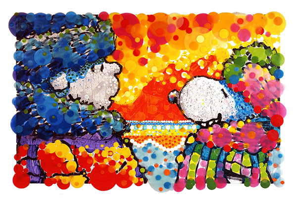 1952年生まれのトム・エバハート氏は、エール大学で絵画を学び、1970〜80年代には風景画家として活躍。1982年の広告プロジェクトをきっかけに「PEANUTS」のキャラクターを描き始めた。1989年に、原作者であるチャールズ・M・シュルツ氏から「PEANUTS」のキャラクターを新しいアートとして描くことを提案され、「ピーナッツ・ペインティング」が誕生。1999年にシュルツ氏が引退を表明した際に、「今後ピーナッツのキャラクターをアートとして自由に表現できるのはトム・エバハート氏だけ」という正式な契約書を渡されている。