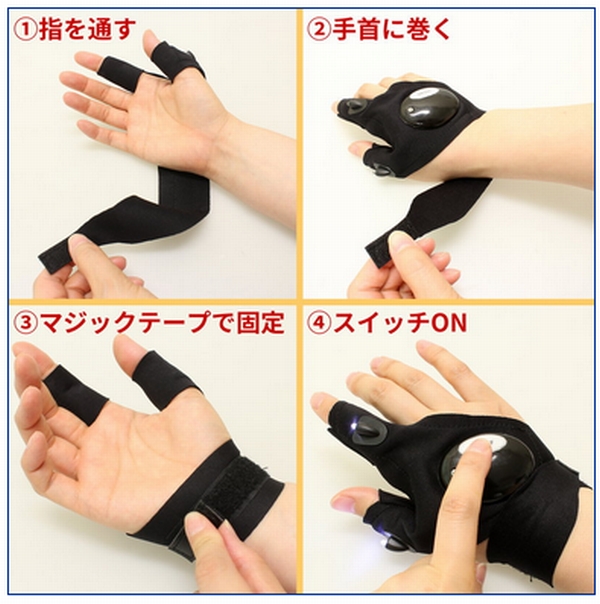 指先は露出しているので、パソコン内部の修理などの精密機械の暗所作業や夜釣りでの仕掛け作り、その他DIYでの使用に適している。