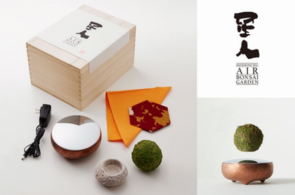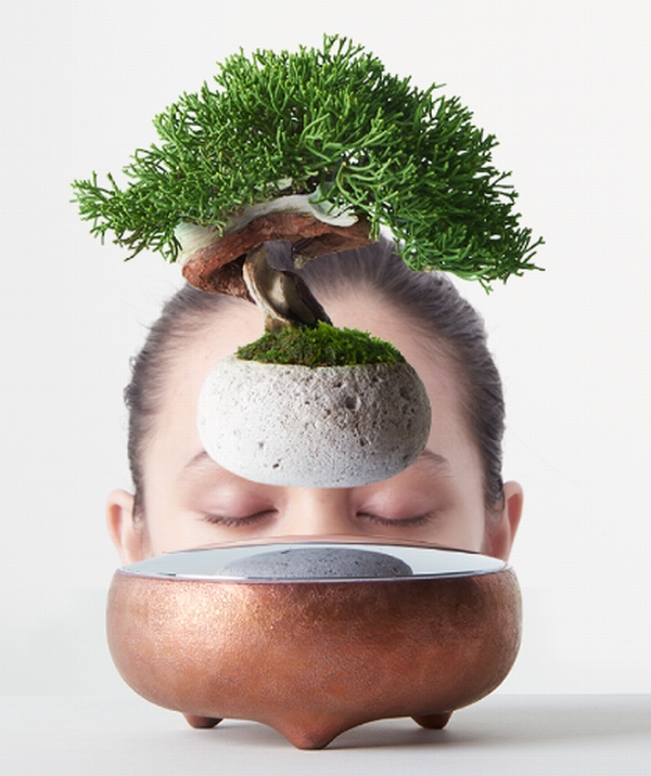 「Air Bonsai (空中盆栽)」は、下部のベース「エネルギーベース」と上部の浮遊する「リトルスター」からなるエアーボンサイキット。マグネットによってリトルスターは空中に浮遊し、ゆらゆらと回転するガジェットだ。