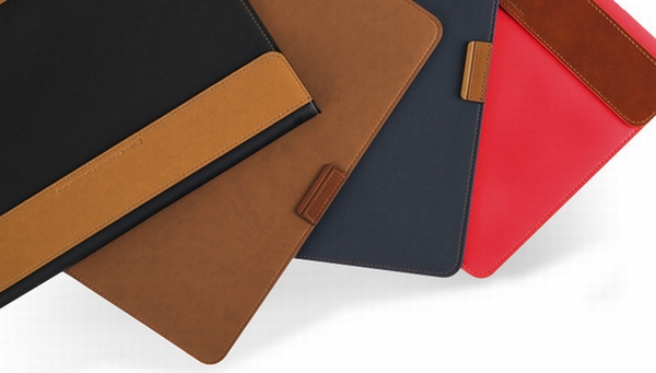 ポーチはジャストフィットサイズで、W27×H39.5×L0.9cm、重量は390g。内側はMacBook Proが傷つかないシャムードで、ポーチはカバー部分のマグネットでしっかり固定される。また、革とファブリックのコンビネーションでオシャレさを演出しており、カラーはブラック/レッド/ネイビー/ブラウンの4色展開。