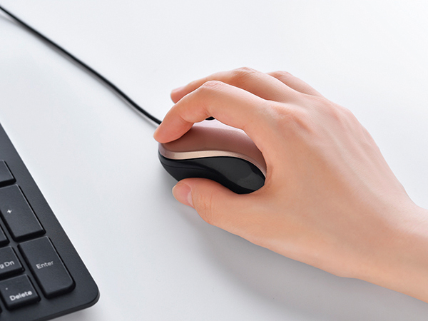 本製品は、女性や手が小さいユーザーでも握りやすい小型サイズのマウスだ。BlueLED光学式センサーが採用されており、分解能は1000dpi。わずかな凹凸や埃にも正確に反応する高い読取性能を備え、ガラステーブルの上でも操作できる。本体には3ボタンを搭載。通常のマウスとは変わらないクリック感がありながら、クリック音の音圧レベルを抑えた静音スイッチが採用された。これにより、会議中やカフェ、夜間などにも周囲を気にせずに使いやすいモデルとなっている。