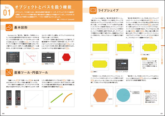 厳選したテーマを取り上げた各CHAPTERの第一セクションでは、ツールや機能を紹介し、以降のセクションでそれらを使用した作例を実践形式で詳しく解説する。各レッスンに登場する作例データはダウンロードできるようになっているので、実際に手を動かしてツールや機能をしっかりと身につけることが可能だ。