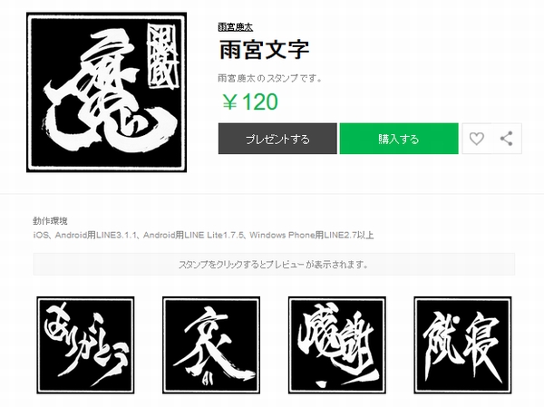 スタンプの価格は120円で、動作環境はiOS、Android用LINE3.1.1、Android用LINE Lite1.7.5、Windows Phone用LINE2.7以上。