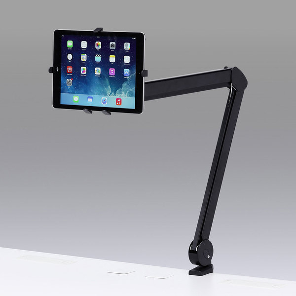 画面の垂直位置を変更しても端末が正面を向く構造になっており、移動の際に画面の向きを調整する必要もなし。画面を必要なときだけ必要な位置に引き寄せて作業でき、机のスペースも広く活用しやすくなるため、作業効率がアップする。耐荷重は0.25〜0.65kg。iPadについては、10.5インチiPad Pro 2017、9.7インチiPad Pro、9.7インチiPad 2017、iPad Air 2、iPad Air、iPad mini 3で動作確認済みであることが公開されている。