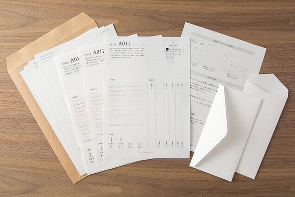 なお、同社では、購入前に実際の紙に手持ちの筆記具で試し書きをしてからの注文を推奨していて、サンプルシート12枚や便箋サンプル、封筒サンプルなどがセットになった「無料サンプル」を提供している。