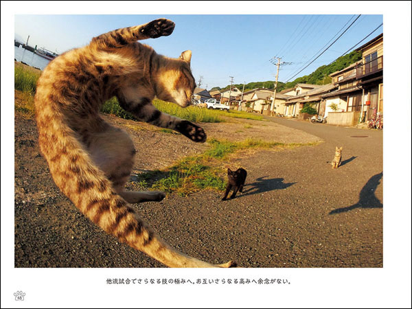 巧みな技を見せるカンフーマスターの猫と、未来のマスターを目指す子猫たちの可愛らしい姿に心癒されるとともに、猫たちの希少で愛らしい動き・表情を存分に楽しめる一冊である。