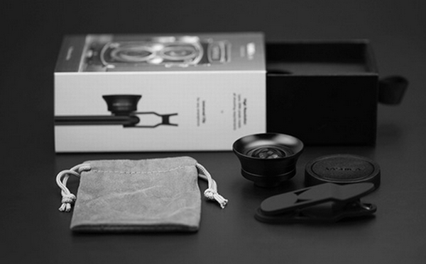 今回、出品されているのは、「2-in-1のワイドレンズ&マクロレンズ」。クリップオンタイプでiPhoneやAndroidなど様々なスマホに取り付けられるレンズで、マクロレンズの上にワイドレンズが装着されているスタイルだ。