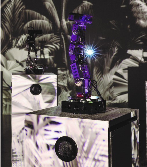 本イベントは、御殿山の魅力を国内外に向けて発信することを目指した企画。御殿山庭園の豊かな緑に包まれた環境で、最新のテクノロジーとアートが融合した初公開の体験コンテンツなどが展開される。一例として、無料で体験できる「Head Light」の公開実験(事前予約制)では、それを被ると見えるパーソナルプロジェクションマッピングによって、人間ではない生き物の感覚で夜の森を見ることが可能。磯崎新氏が設計した茶室「有時庵」では、AIを搭載したロボットがコミュニケーションするインスタレーションが登場し、ロボットどうしが独自の言語で会話する未来の世界を垣間見ることができる。