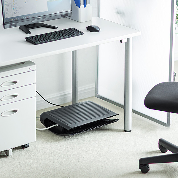サンワ、机の下のケーブルや電源タップの収納もできるフットレスト「100-FR007」を発売