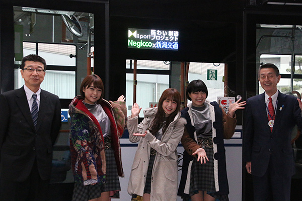 今回のプロジェクトは、みなとまち新潟の中心部を巡る新潟交通株式会社の路線バス「みなと循環線」を走る小型バス「ポンチョ」を、Negiccoが考えるオリジナルデザインでラッピングする企画だ。目指しているのは、おもてなしの心で「ありがとう!感謝!」を表現し、パッと目を引くようなデザイン。運航開始は2018年7月の予定で、車内アナウンスもNegiccoの3人が担当する。
