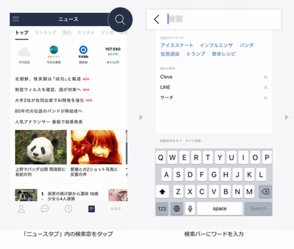 LINE株式会社は、LINEアプリ内の「ニュースタブ」に検索機能を追加したと発表した。まずはiOS版でリリースされ、Android版には順次追加される。