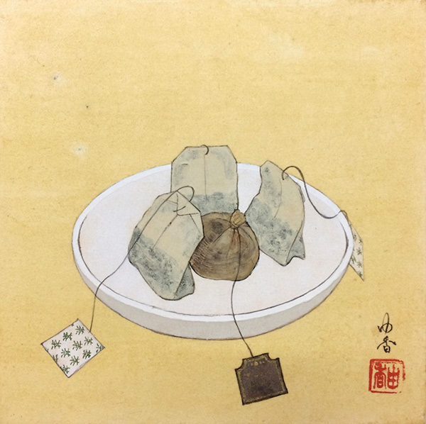 身近な物や日常風景をモチーフにしたユニークな日本画を描く葛西由香氏の個展「日々とあそび」