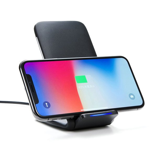 本製品はスタンドタイプであるため、充電しながらスマートフォンを操作できることが大きな特徴だ。デュアルコイルが採用されており、端末を縦向きと横向きのどちらに設置しても充電が可能。Qi準拠機器で使用でき、iPhone X / 8 / 8 PlusやGalaxy S6 / S6 edge / S7 edge / S8+ / S8 / Note8に対応している。