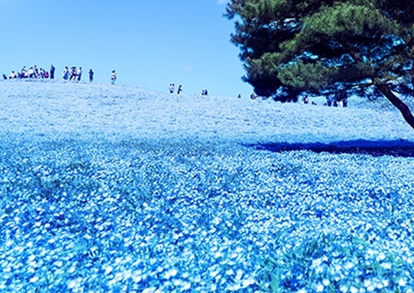 映像で見られるネモフィラとコキアは共に国営ひたち海浜公園の丘の様子。4月中旬から5月上旬に見頃を迎える450万本のネモフィラは、空の色と混じり合い、幻想的な趣。10月の紅葉で鮮やかな赤に染まる3万2千本のコキアは、その鮮烈なカラーリングで、誰もが息を呑む絶景になっている。