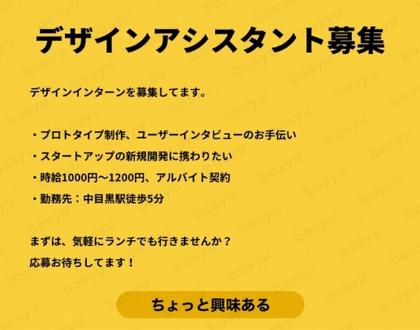 本サービスは、SNS上で「求人」「インターン」「ユーザーインタビュイー」などの“募集”を行うことに特化した募集サービス。