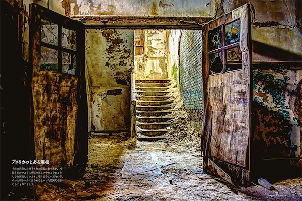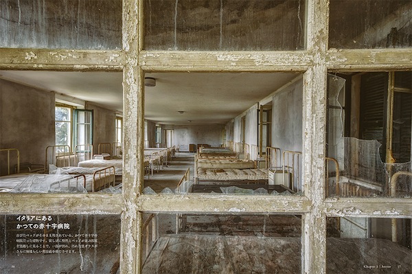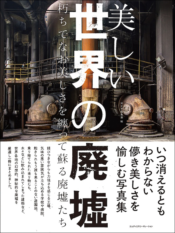 本書は、そんな神秘的な廃墟を世界中から集めた写真集である。錆びつきながらも力強さを感じる工場、気味の悪い雰囲気が立ち込める学校や病院、飽きられてもう誰も来ることのない遊園地、乗り捨てられた乗り物たち、木々などに飲み込まれてしまった建物……。幻想的で神秘的な、朽ちてもなお美しさを纏って蘇る廃墟の数々を厳選した一冊となっている。