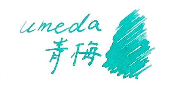 「梅田 蔦屋書店3周年 オリジナルインク」には、全2色のラインナップが用意された。1つは2016年に1周年記念としても販売されていた「umeda 青梅」の新ボトル(https://store.shopping.yahoo.co.jp/umd-tsutayabooks/stge4901680183471b.html)。明るく健やかな青みがかったグリーン色で、爽やかな印象のインクだ。
