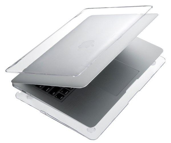 本製品は、MacBook Airの表面と裏面を傷から守るハードシェルカバーだ。薄型で透明度も高いクリアカバーであるため、高級感のあるアルミボディに装着しても目立ちにくい仕様。MacBook Airの優れたデザインを損なうことなく、本体を保護できる。素材には、一般的なプラスチックと比べると軽くて薄くて丈夫なポリカーボネートが採用された。