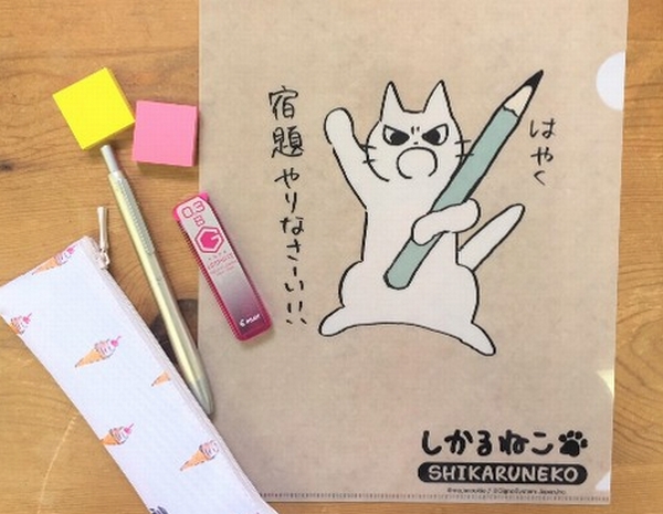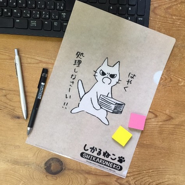 その「しかるねこ」がヴィレヴァン限定グッズになって登場。クリアファイル各540円(各税別)では、宿題や仕事の処理を急かしてくれる。