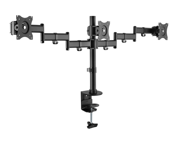同製品は、3つの画面を横並びに設置できる液晶ディスプレイ用アーム。それぞれ耐荷重8kg、最大27インチの液晶ディスプレイを搭載できる。