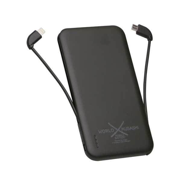 フォースメディア、2種類のケーブルを収納可能なモバイルバッテリー「世界武蔵」を発売