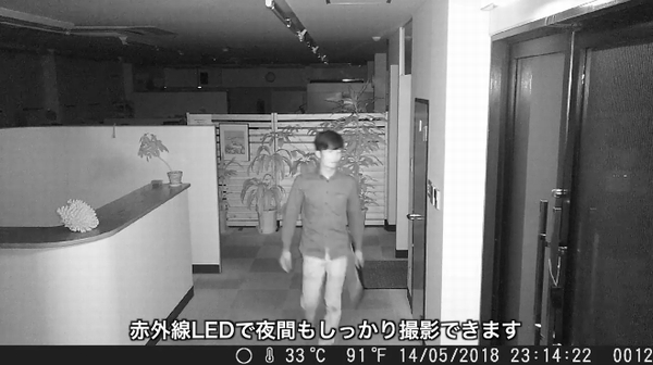 夜間に関しては、最大約12m~まで照らせる赤外線LEDを使用。モノクロになるがしっかり撮影ができる。