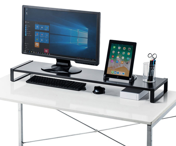 サンワサプライ株式会社は、3種のスチール製机上ラックを発売した。デスク上の収納スペースを増やし、有効活用できるようにするアイテム。上にディスプレイなどを設置でき、底側に生まれた空間にキーボードやマウスをはじめとした小物を収納できる。