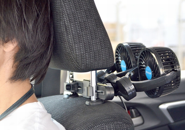 これは猛暑の中の家族ドライブの必需品、後部座席に冷たい風を届ける「爆風ツインファン」