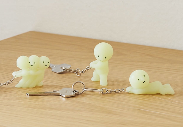本製品は、蓄光素材でできたフィギュアが付いたキーホルダー。光を吸収して暗いところで発光するため、カバンの中や玄関など、暗がりで鍵を見つけるのに役立つ。