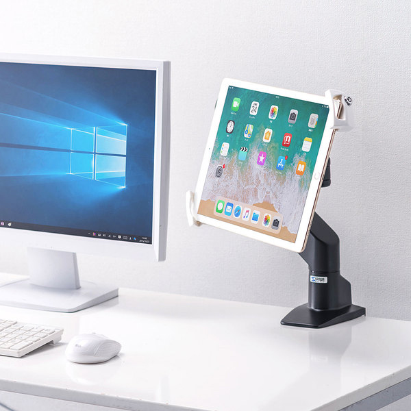 サンワサプライ、iPad Proなどのタブレットをアームに設置するためのVESA対応ホルダーを発売