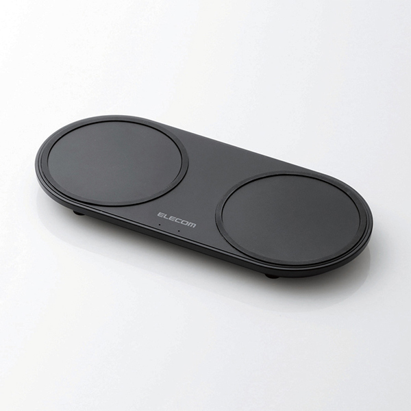 エレコム、2台の端末を同時に設置できるQi対応のワイヤレス充電器「W-QA05BK」を発売