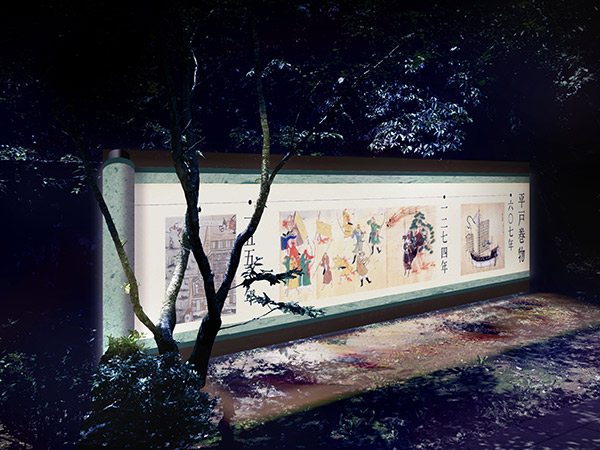 そのほか、海へ続く参道を色彩豊かに照らすライトアップや、平戸の歴史を記したデジタル絵巻の展示など、城内では9つのコンテンツを展開。商業施設や大型イベントの総合プロデュースを手掛ける株式会社エフ・ジェイ エンターテインメントワークスと株式会社Zero-Tenが演出を担当している。