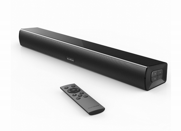 本製品は、テレビの映像や映画、ドラマ、ゲーム等の音楽を強化できるコンパクトなBluetooth対応サウンドバー。同社のオーディオデバイスとしては初となるバー形状のスピーカーとなっている。サイズは横幅約550×高さ63×奥行94mm。