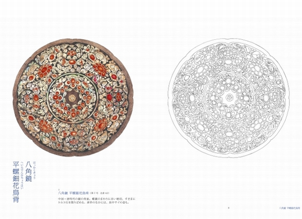 掲載されている宝物は、鏡の裏に螺鈿で花鳥文をあらわした鏡「八角鏡 平螺鈿花鳥背(はっかくきょう へいらでんはい)」、蒼が美しいガラス坏「瑠璃坏(るりのつき)」、べっ甲と貝殻の模様が美しい「玳瑁螺鈿八角箱(たいまいらでんはっかくのはこ)」など逸品揃いとなっている。