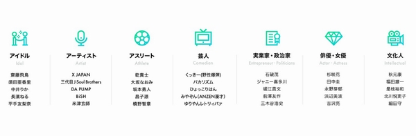 部門は齋藤飛鳥さんらが選ばれた「アイドル」、X JAPANら選出の「アーティスト」、乾貴士選手らの「アスリート」、くっきー(野性爆弾)さんらの「芸人」、石破茂さんらの「実業家・政治家」、杉咲花さんらの「俳優・女優」、秋元康さんらの「文化人」となっている。