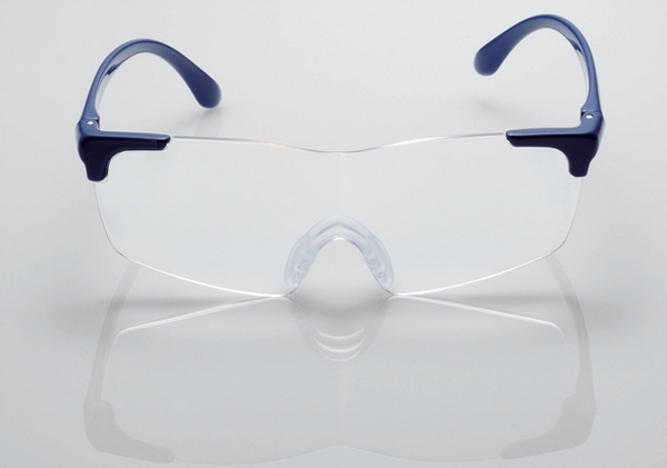 本製品は倍率1.8倍のハンズフリールーペ。普段使いのメガネとの重ねがけに対応し、レンズに幅と高さをもたせたデザイン。顔にフィットする柔らかフレーム採用、レンズの裏側に施された光が反射しにくい「AR コート」により光のチラつき低減、柔らかくすべりにくい鼻パッド搭載により、長時間の使用でも疲れにくくなっている。