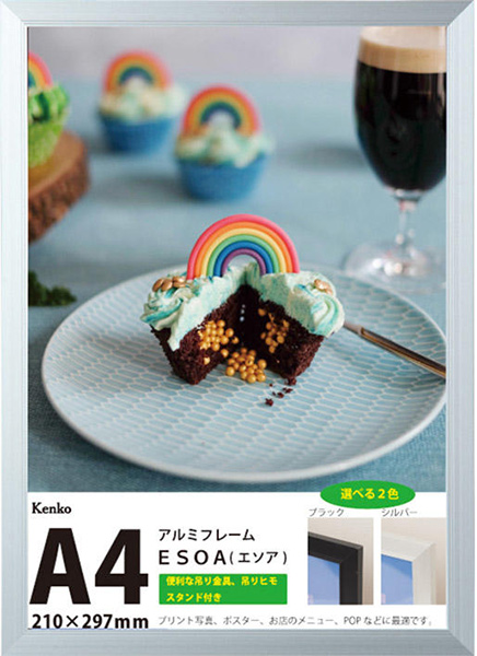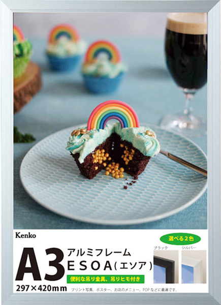株式会社ケンコー・トキナーは、額縁の新製品として「ESOA(エソア)」を発売した。マット台紙がなく、そのままプリントを入れる「OAフレーム」。A3サイズ(297×420mm)に対応するモデルと、A4サイズ(210×297mm)に対応するモデルがあり、それぞれでブラックとシルバーのカラーバリエーションが用意されている。希望小売価格はA3サイズが各1494円(税抜)で、A4サイズが各1270円(税抜)。