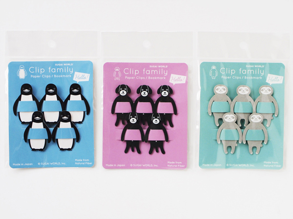 株式会社スガイワールドは、新感覚の紙クリップ「クリップファミリー」の第4弾を、2019年2月22日(金)に発売する。第4弾のデザインでは世界的にも人気がある動物を厳選し、ペンギン、ドッグ、ナマケモノの3種類をラインナップ。本体には、プラスチックのように硬くて丈夫ながら、95%以上が天然繊維のエコ素材であるファイバー紙が使用されている。5個入りで、希望小売価格は各480円(税抜)。