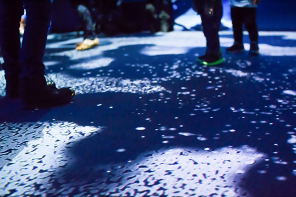 「雪とクラゲ」は、人の動きに合わせて変化するインタラクティブな演出を取り入れていることも特徴。降り積もった雪の上を実際に歩いたかのような足跡がついたり、映し出された水の上を歩くと足跡が波紋になって広がったりと、その世界観を見るだけではなく体感して楽しむことが可能だ。展示空間には、柔らかい雪をイメージしたオリジナルアロマが香り、クラゲの拍動のゆったりとしたリズムをベースにした音楽も流れる。