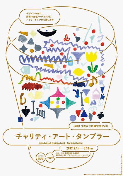 2019年2月1日(金)から3月10日(日)まで、東京ミッドタウン・デザインハブにて、第77回企画展「JAGDAつながりの展覧会 Part2 チャリティ・アート・タンブラー」が開催されている。入場無料、会期中無休で、開催時間は11:00〜19:00。公益社団法人日本グラフィックデザイナー協会(JAGDA)の企画・運営による展覧会となっている。