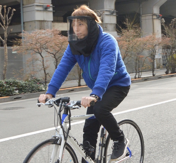 視界は真横まで広がる透明なシールドによって確保され、自転車走行でも危険を感じない。