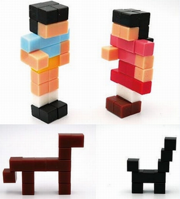本製品は、立方体(1辺約12mm)の6面全部に粘着性を持たせた新感覚のピクセルクラフトツール。粘着はピクラ同士は強力にくっつき、他のものにはくっつきにくいという性能を持ち、テーブルや服、指にくっつくことを気にせずにブロッククラフトに没頭できる(ガラスにはくっつく)。