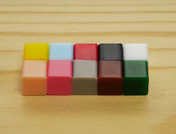 カラーはブラック・ホワイト・レッド・水色・イエロー・グリーン・ブラウン・グレー・ピンク・ナチュラルの10色を用意。組み合わせによって完全オリジナルな作品が作れる。