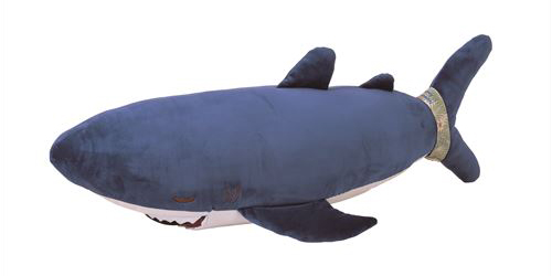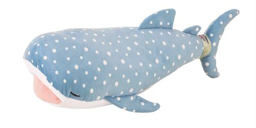 サイズは約73(幅)×20(高さ)×30(奥行)cm。材質は側地がポリエステル95%・ポリウレタン5%、中材がポリエステル100%で、クール素材の部分はナイロン100%となっている(「サメのザップ」と「じんべえさん」は口の中もナイロン100%)。