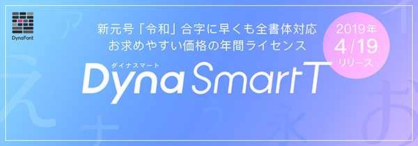 ダイナコムウェア株式会社は、ダイナフォント年間ライセンス「DynaSmart」シリーズのラインナップ見直しを実施。2019年4月19日(金)に、新しく「DynaSmart T」を発売する。TrueTypeフォントの年間ライセンスで、Windows版279書体、Mac版279書体を収録(いずれか1台を選択)。書体は随時の追加が予定されている。