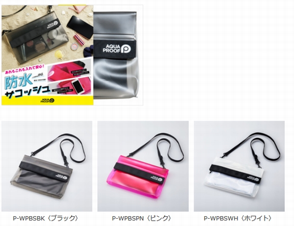「P-WPBDシリーズ」は防水バッグ。巾着のような可愛いデザインながらJIS保護等級IP45対応の防水・防塵性能で、スマホや財布、タオルなどをまとめて運ぶことができる。