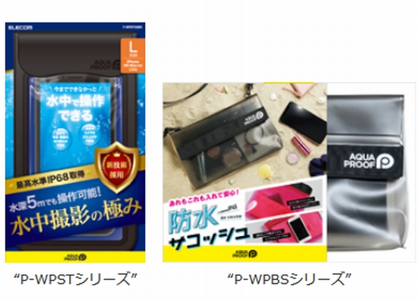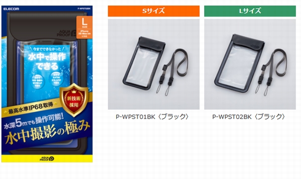 オーソドックスなクリアケースタイプは「P-WPSTシリーズ」。水中でのタッチ操作に対応し、JIS保護等級IP68対応なので水深5mまでなら一緒に潜って水中写真が撮影できる。